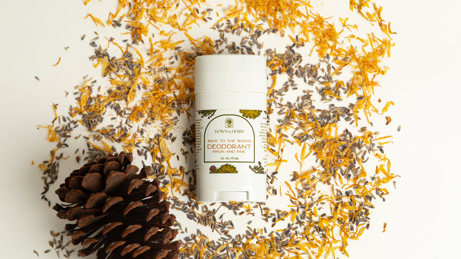 Arrowroot powder, aluminum free baking soda, shea butter, coconut oil, beeswax, bentonite clay, sandalwood, piñon pine from Sedona Arizona, grapefruit, vetiver.